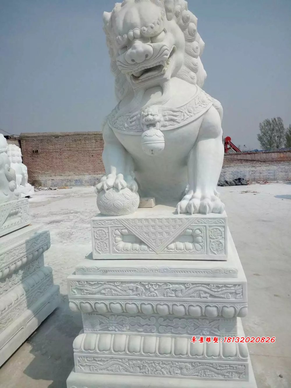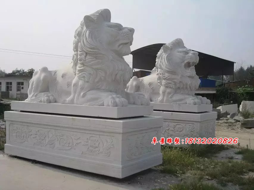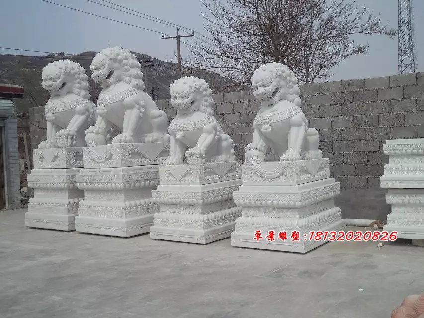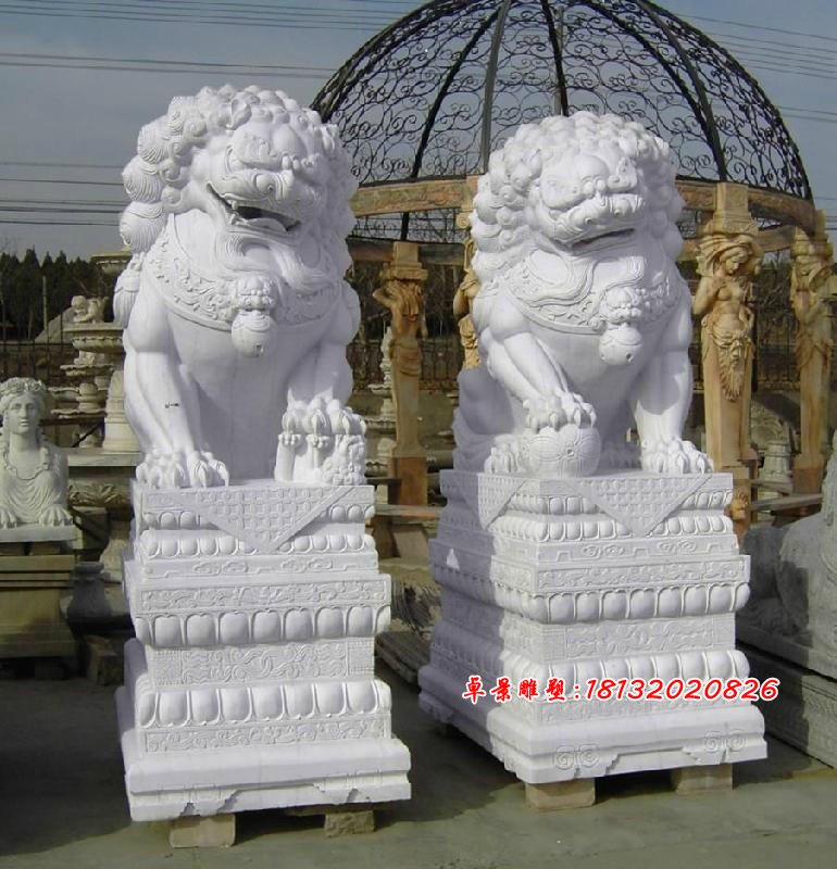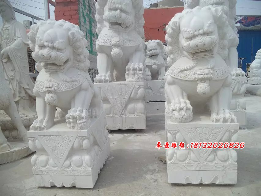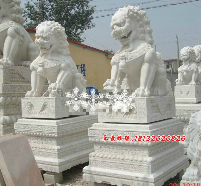 中国人历来把石狮子视为吉祥之物。在我们生活中各种造型的石狮子随处可见。古代的官衙庙堂、豪门巨宅大门前,都摆放一对石狮子用以镇宅护卫,石狮子具有招财守财的作用。 石狮子一般分为中式石狮子和欧式石狮子,中式的石狮子,具有独特的艺术风格。它们既是珍贵的历史文物,更是宝贵的艺术珍品,反映出我国源远流长的文化传统和石雕艺术,值得我们观赏和珍惜!下面卓景雕塑为大家介绍一下常见的汉白玉狮子雕塑。