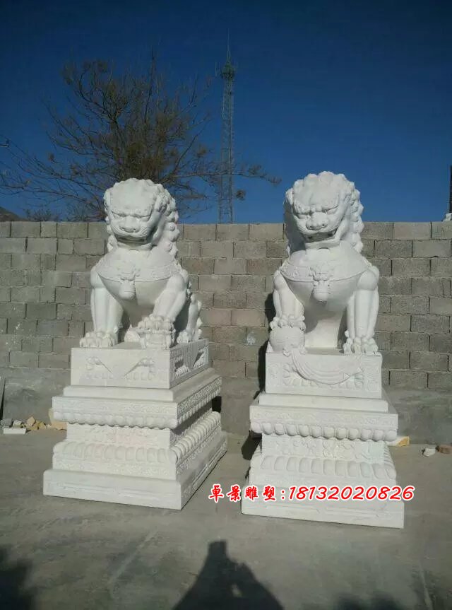 这对狮子采用山东莱州白制作而成,这种狮子多用来摆放在工厂门口,具有招财的作用。