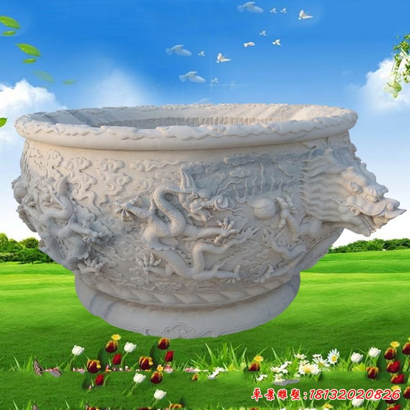 石雕水缸在老百姓家中最为常见了。石雕水缸就是老百姓用来盛水的一种器具,多以陶制成,也有以铜制成用作救火的。这是石材雕刻最早的记录之一,以前水缸雕塑也是生活用水的主要来源,这也是中国的一种民俗活动之一,这种类型的石材雕刻都是用户比较喜欢的。石雕水缸代表着繁荣和收获的象征,人们用鲤鱼跳龙门寓意事业有成和梦想成真,鱼还有吉庆有余、年年有余的蕴涵。后以鲤鱼跳龙门比喻中举、升官等飞黄腾达之事。