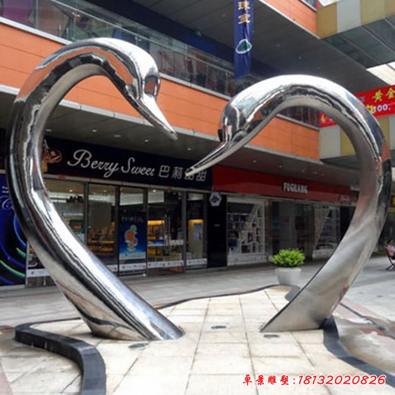 鹅鹅鹅,曲项向天歌,白毛浮绿水,红掌拨清波.骆宾王的一曲咏鹅流传至今 ,天鹅的羽色洁白,体态优美,叫声动人,不禁的叫人喜欢。在许多的景区绿地上都喜欢放有一些天鹅雕塑 ,还有在喷水的景观上面也常用到天鹅雕塑。制作不锈钢情侣天鹅一般常用的就是不锈钢雕塑。不锈钢顾名思义,通体洁白 ,晶莹透彻,擦亮后更是圆润光滑,敬贤尊贵。